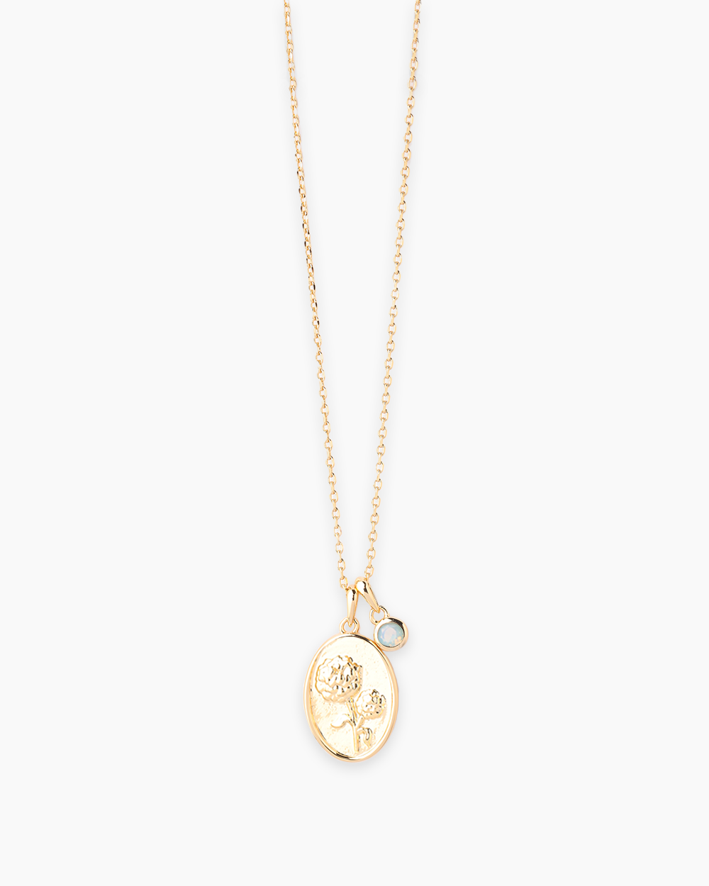 Celebrate your birth month with the Birth Flower Gold Necklace. The necklace features a gold plated pendant adorned with a unique floral design representing your birth month. The pendant is embellished with a birthstone-colored cubic zirconia for added sparkle. Finished with a 14k gold plating and adjustable chain, this necklace is a perfect gift for yourself or a loved one.