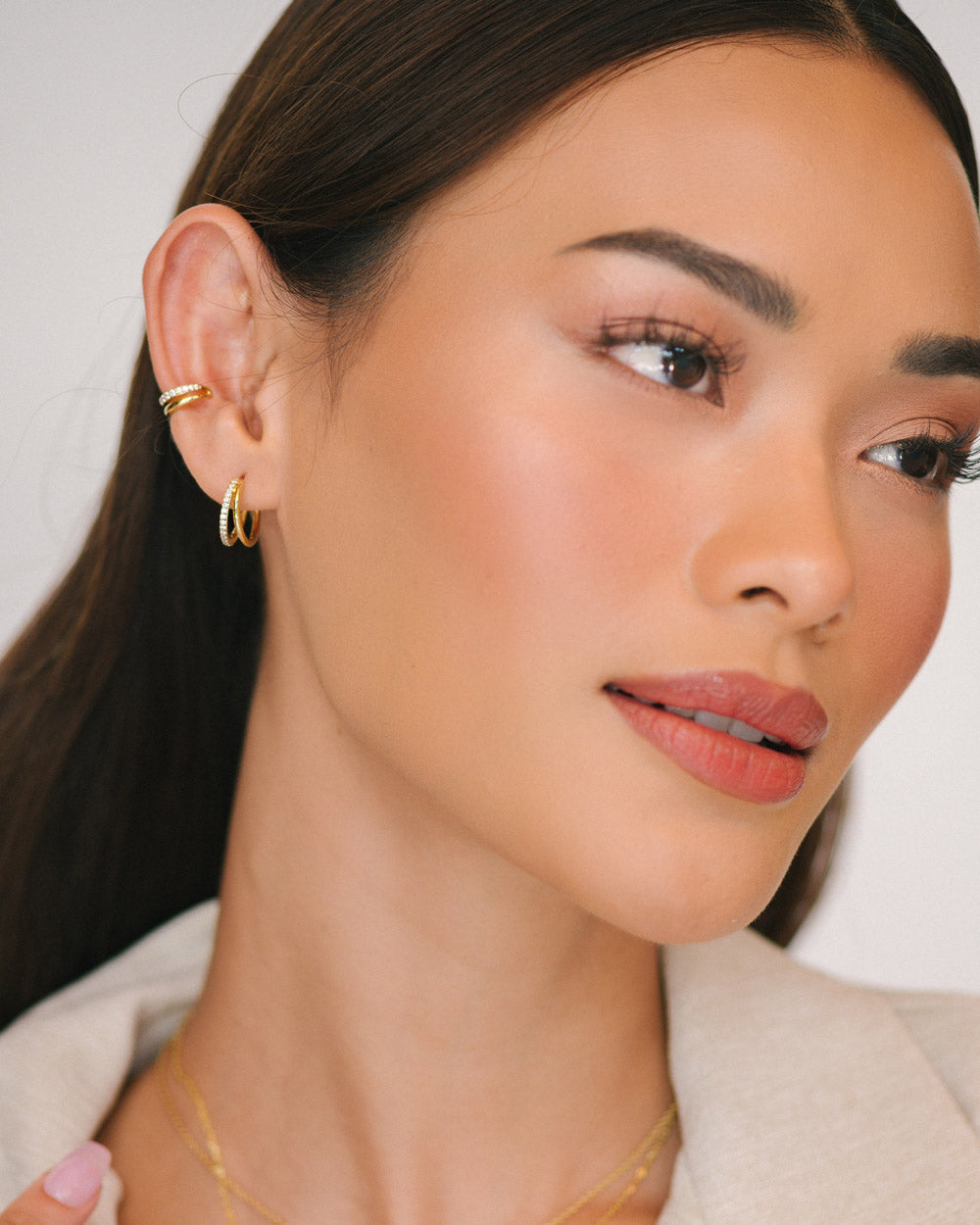 HypoallergenicThese illusion earrings boast a fusion of smooth gold and shining pav茅. While the gold half exudes a classic style, the pav茅 half glistens brilliantly. Create a striking balance with the Gemma Gold Hoops.