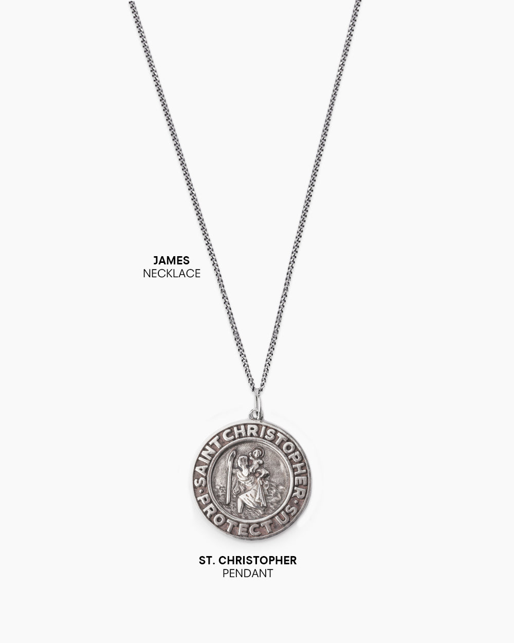 The St. Christopher Silver Pendant features a 20mm charm of Saint Christopher, the patron saint of travelers. Featuring a rugged, oxidized finish, this timeless silver pendant offers protection and makes a meaningful gift for the adventurous spirit.